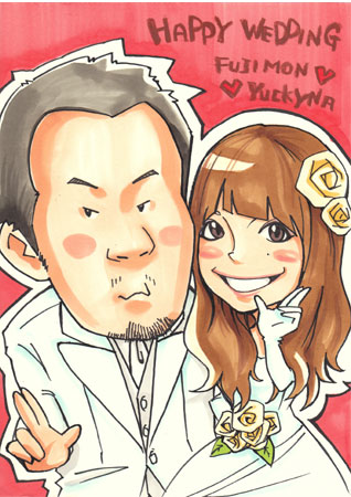 席描き(ショッピングセンターやイベント会場)、似顔絵名刺、ウェルカムボードなどの受注製作